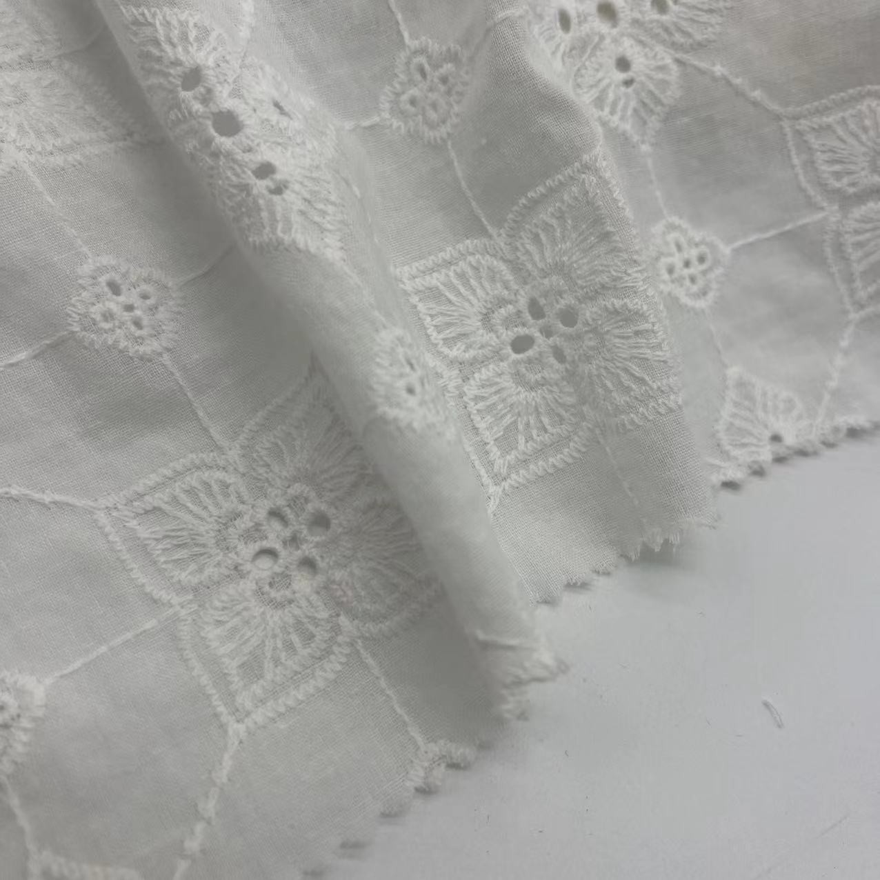 Small mesh design white embroidery fabrics 100% cotton breathable for dresses